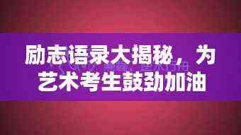 身为艺术考生,你们身处在一条充满创造力与激情的道路上,这条道路充满了挑战,但同时也满载着机遇,你们正承载着梦想,勇往直前,让我们一起用英文来分享一些励志语录,为你们加油鼓劲。